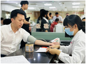 在市中心血站,志愿者們在工作人員的引導(dǎo)下,有序做好信息登記、健康征詢、血壓測量、初篩檢測等工作。隨后,符合獻(xiàn)血條件的8名志愿者紛紛挽起衣袖,用2600CC的熱血筑成一道延續(xù)生命的紅色城墻。